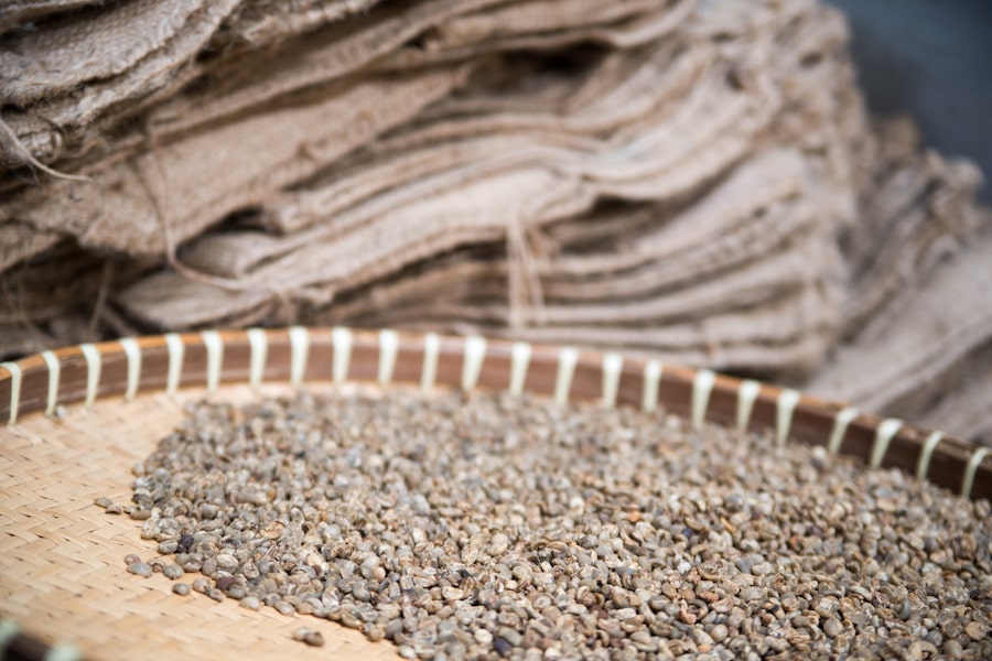 The processing is specific because it is neither a wet processing, nor a dry processing.The wet-hulled process, also known as Giling Basah, is a coffee processing method primarily used in Indonesia that removes the parchment layer before the beans are fully dried. This technique was developed to speed up drying in a humid climate by processing the coffee while it has a high moisture content. After drying the brittle pergamino hull will be removed and afterwards the coffee is screened and sorted by colour, size and weight. Apparently the Lintong coffee owes his exotic taste to this special process.